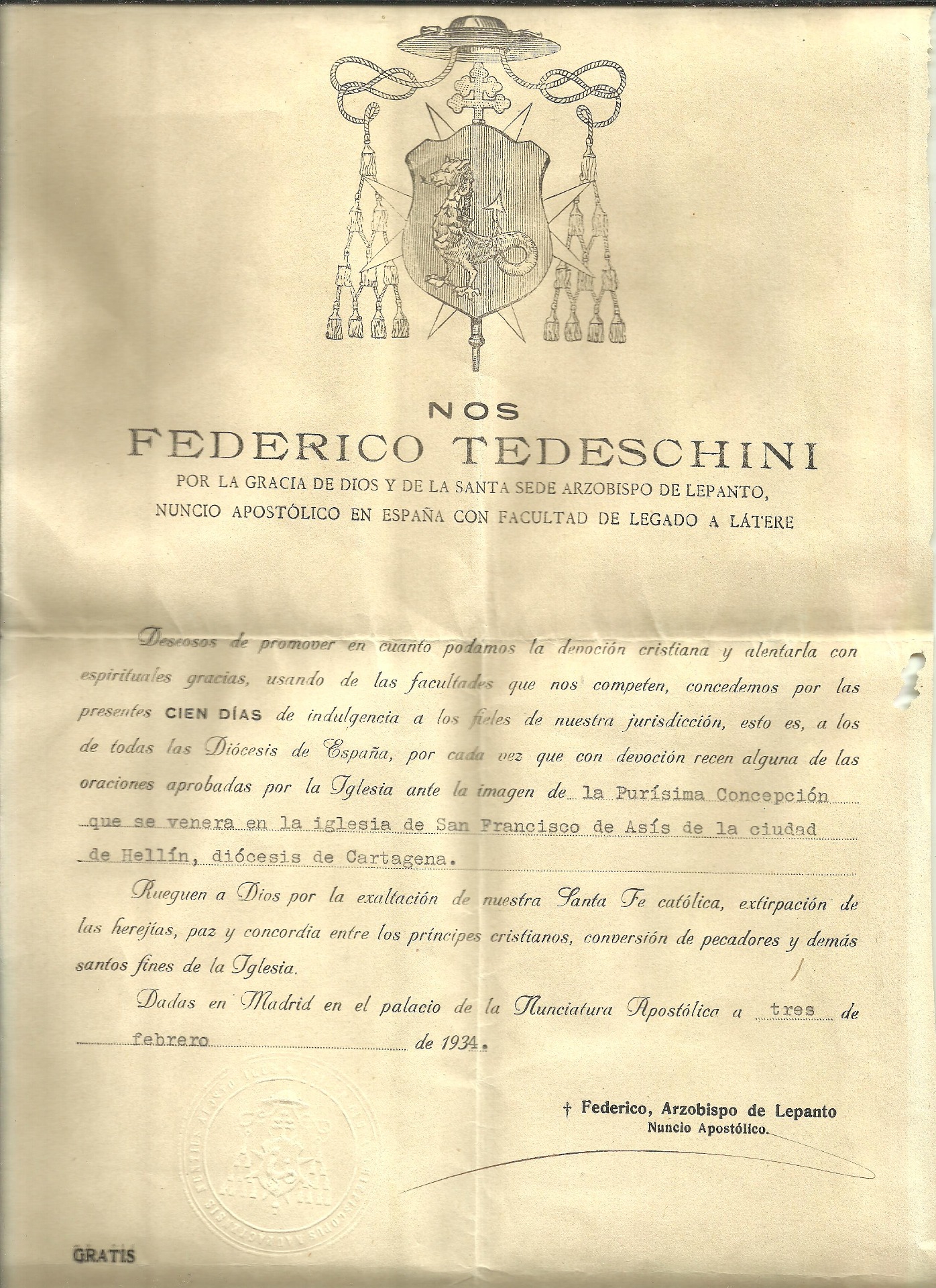 En el año 2021 la Cofradía recuperaba tres Documentos de Indulgencias, fechados, dos de ellos en 1934 y otro en 1941 respectivamente.